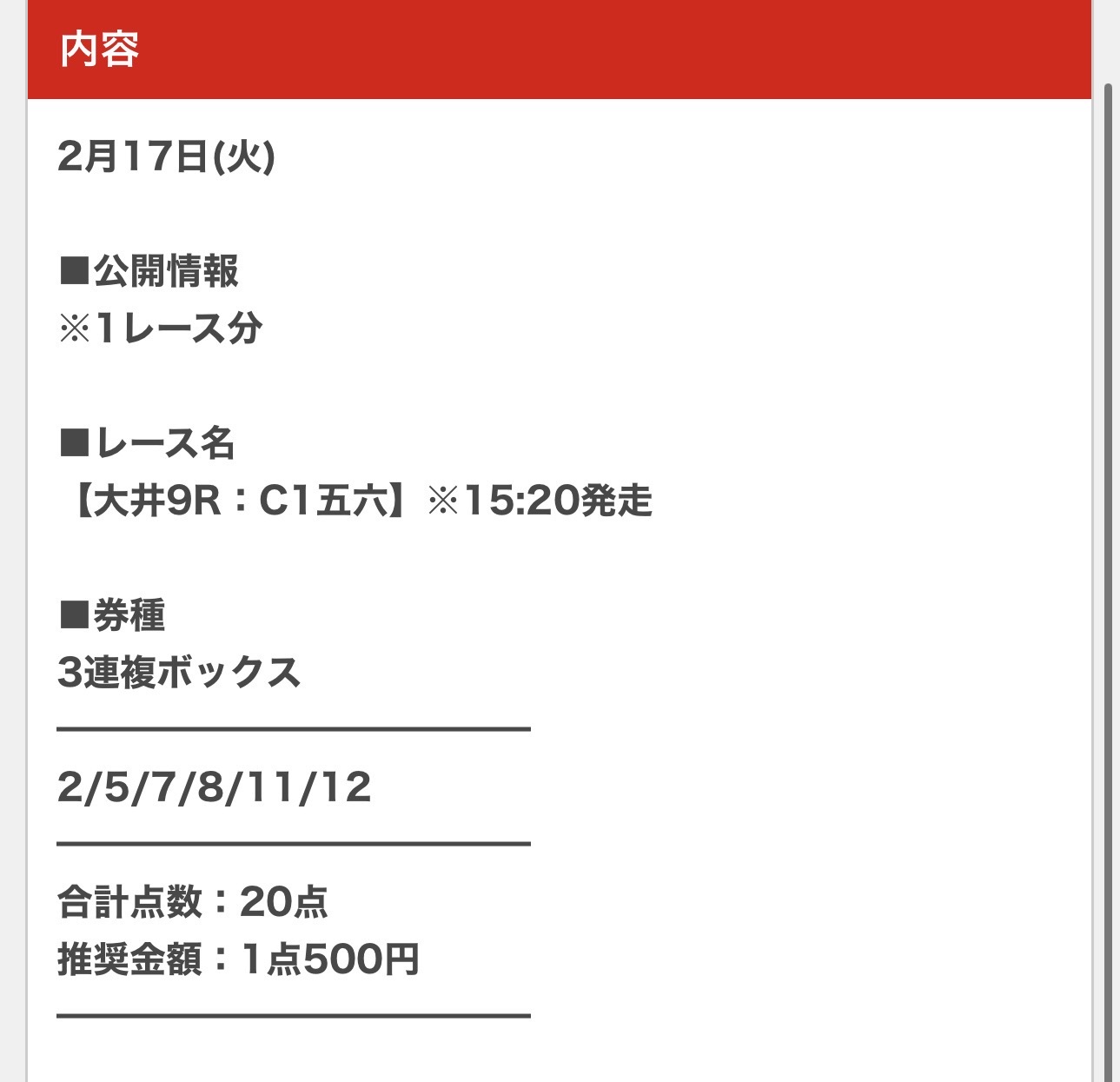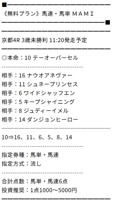 そしてライン友達登録を済ませた17日(火)の無料予想で早速的中!