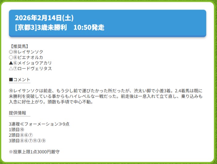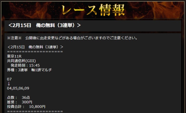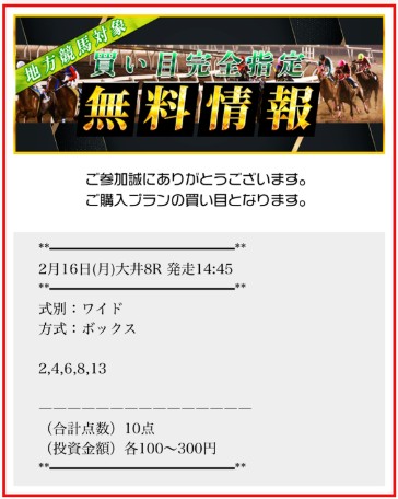 無料予想高配当を的中させてくれました!