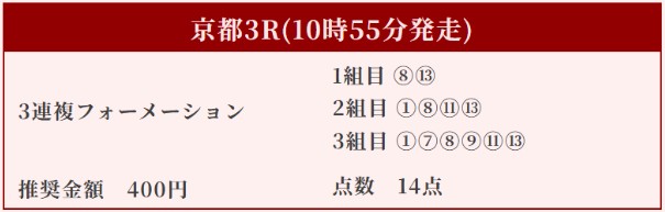 京都3Rで2馬券種(馬連・馬単)の的中で