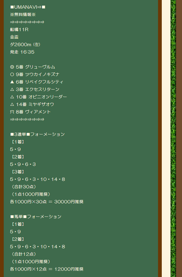 これは今年もう1発無料予想で帯封ありそうな予感!