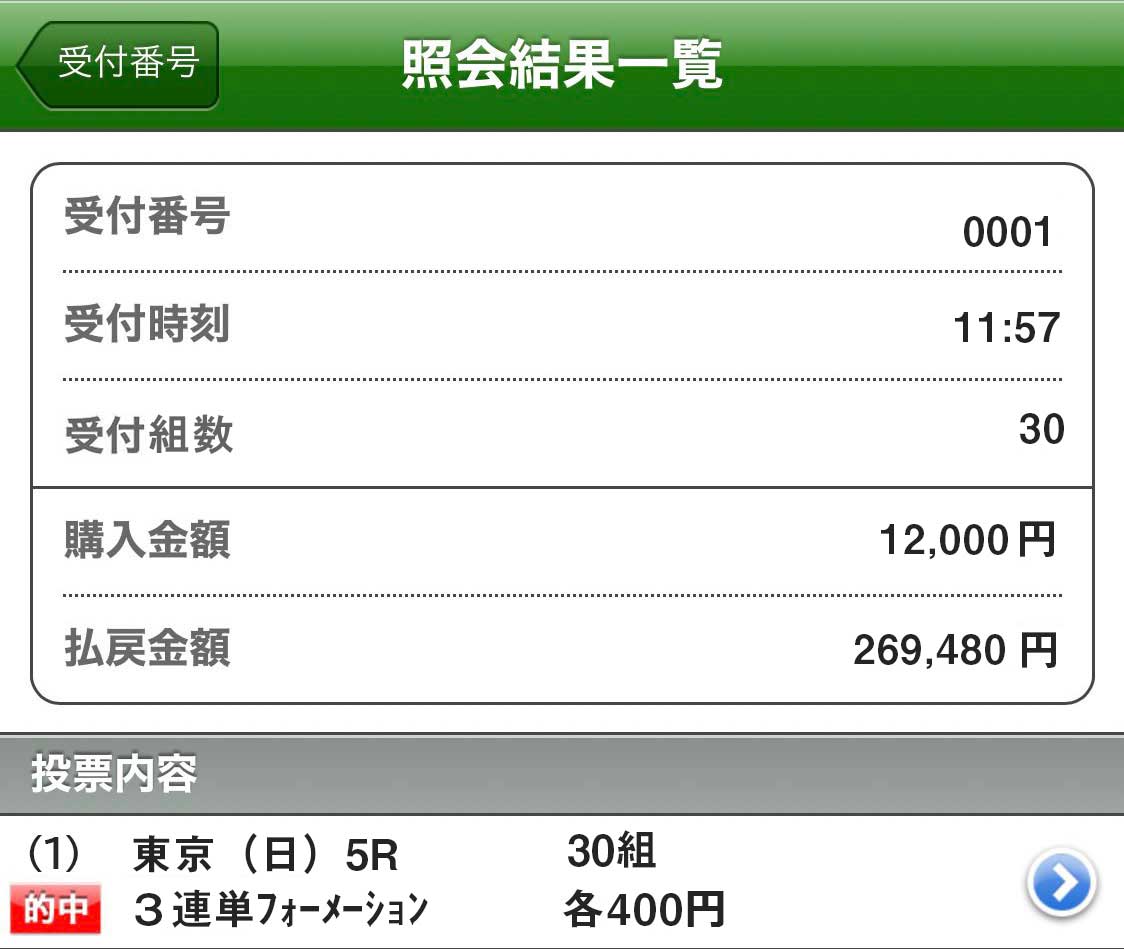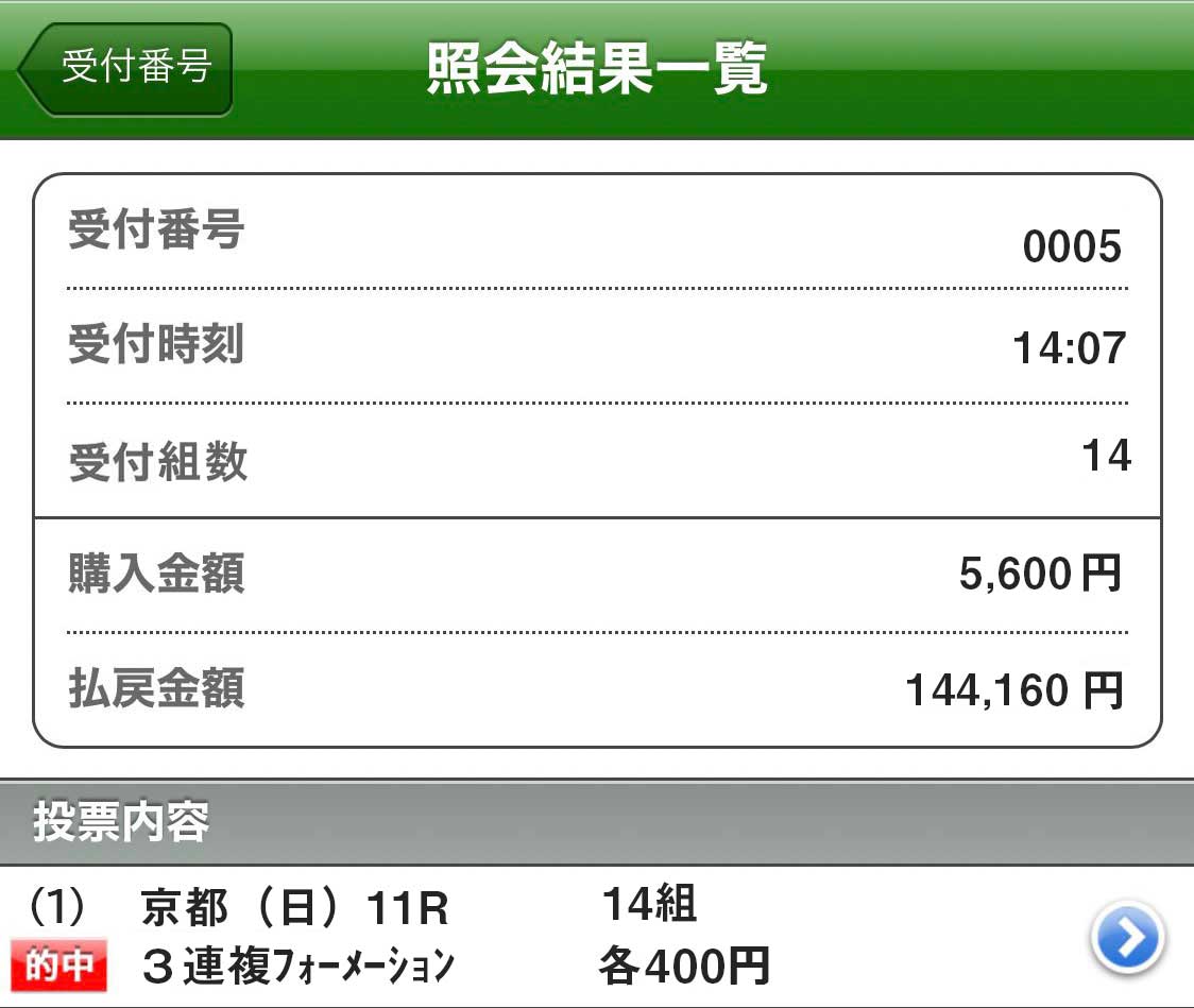 1万5960円を獲得!財布に優しい馬券代(1点400円)で小遣い倍増