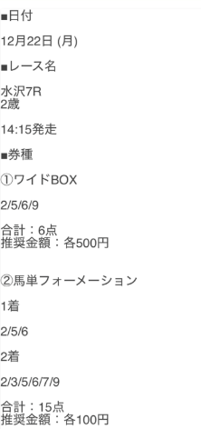 買い目点数も6点だったので馬券代を1点2000円で勝負