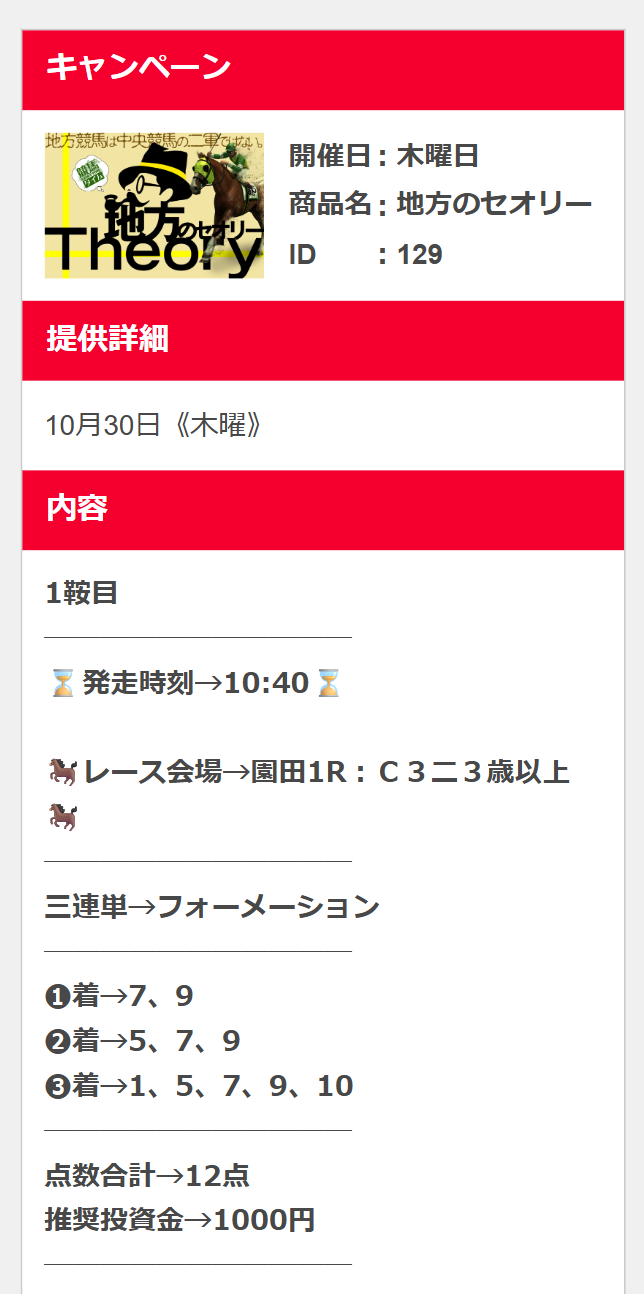 11月11日(火)の地方無料予想では1万2800円的中!