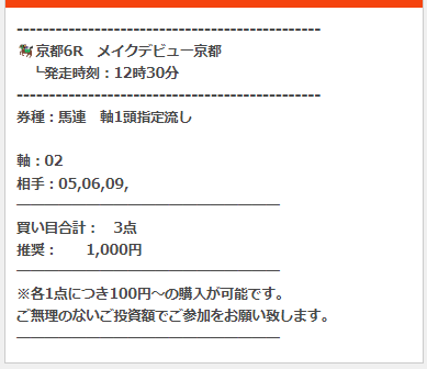 指示は馬連5点だったんだけどついでに1頭軸で三連複も買った結果